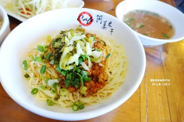 主食以麵食為主,可選擇米干、米線、黃麵及米粉等,想要吃得豐盛就來一碗招牌阿美,不然就是看想吃那些料,基本上就是蛋、豬肝、肉片這三種搭配,另外也有紹子麵、炸醬麵及麻辣鍋等可選擇,其他還有各式小菜、飲料及破酥包等
