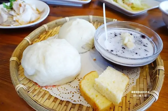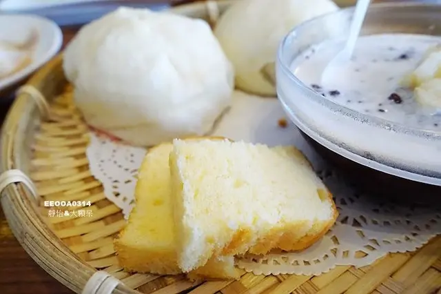 點心盤的組合是一顆破酥包、椰香紫米及兩小片蛋糕,另一顆破酥包是加點的,破酥包可以自由選擇紅豆或是鮮肉口味