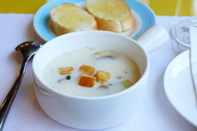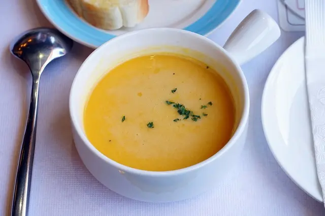 南瓜濃湯 恩嗯!他們的南瓜濃湯一喝就知道是自己做的,南瓜自然的甜味喝起來非常的舒服,也不會覺得有膩口的感覺,這湯很順很好喝^^