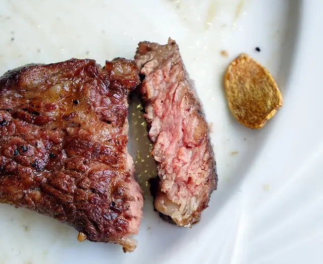 店家強烈建議要吃3分熟,我就從善如流點了3分熟,當我下刀一切開的時候,它是完全沒有半滴血水的,這跟我的認知完全不同啊,聽了說明才知道店家是使用特殊的料理手法,上2次的煎台再使用烤箱,這二煎一烤的手法讓他所有的肉汁都完全鎖在裡面,不過還沒吃感,看起來熟度好像也有過3分熟ㄟ,這要吃了才知道