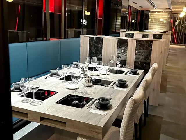 大明星頂流涮涮鍋不僅走道寬敞,更利用木製矮牆隔絕鄰桌,有點半開放的包廂感,用餐的尊貴感即現。