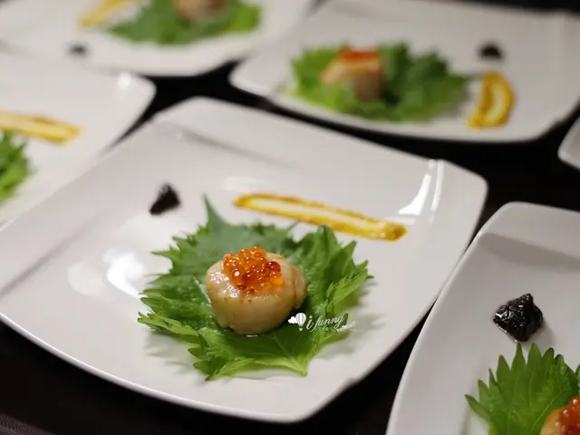 開胃前菜有兩種選擇,洋漬鮑魚沙拉/日曜鮭魚卵豆腐。