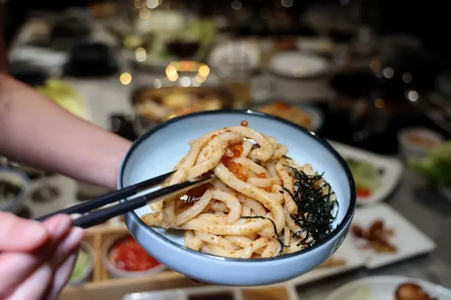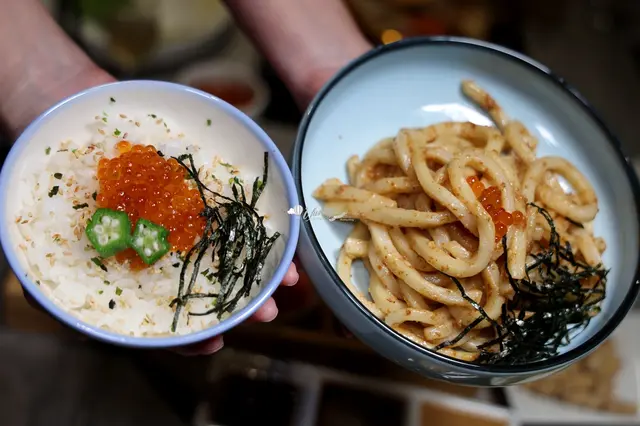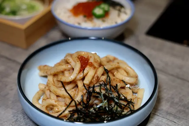Q軟烏龍麵加上「明星夢幻沙茶醬」香氣四溢,略帶甜味卻不膩口的滋味,拌上鮭魚卵及海苔絲,真的令人意猶未盡。