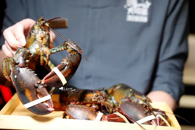 活體波士頓龍蝦,還活跳跳的,嘴巴還在吹泡泡呢!
