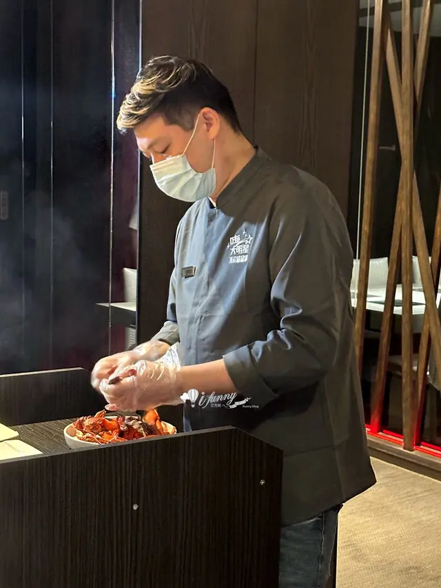 只有點這盤活龍蝦套餐,現場就會有桌邊服務,會幫客人把龍蝦去殼。