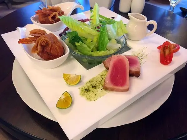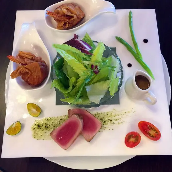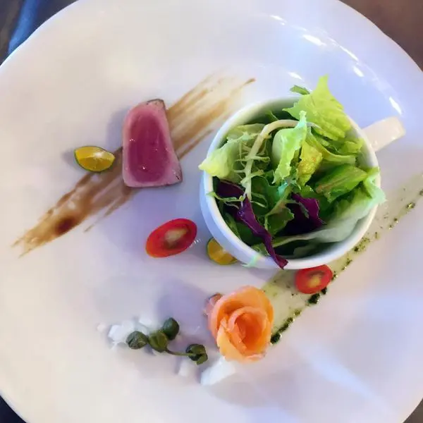 ▼這是兩客無菜單料理的沙拉:煙燻紅鮭捲沙拉