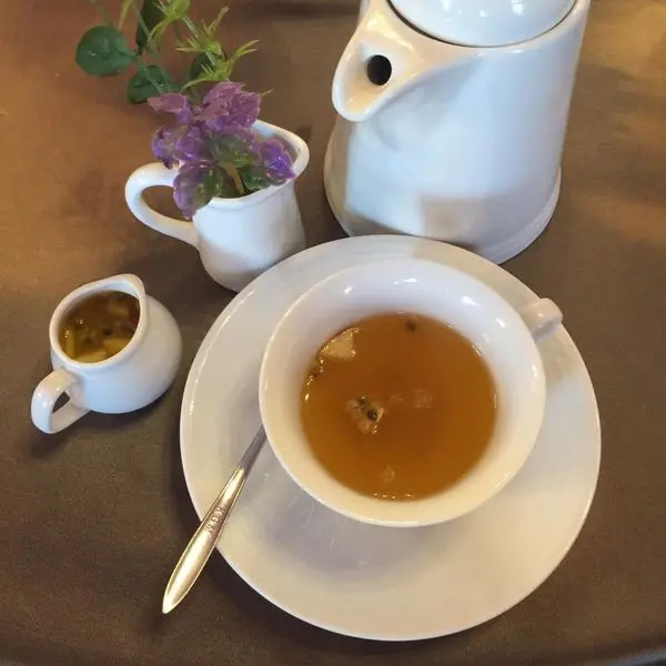 這杯茶是我點的 茶包含有:接骨木、蔓越莓、薰衣草、山楂、紫黑漿果、金盞花