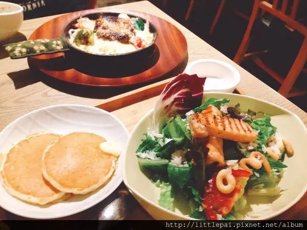 記得以前的套餐鬆餅雖然小~但是也是會有彩色醬~但是這天相當簡單的2小片放在左上方~