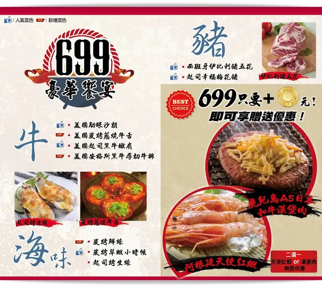 699+50元菜色升級,