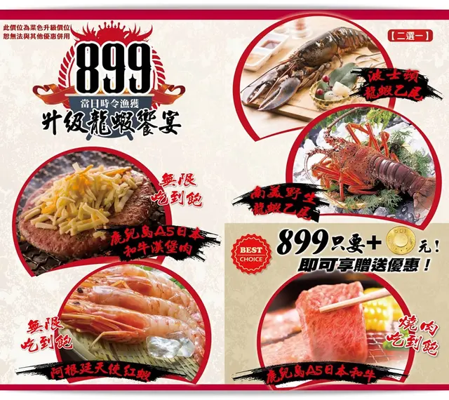 現在899元除了燒肉吃到飽,居然還能吃到龍蝦,誰能抵擋此魅力!