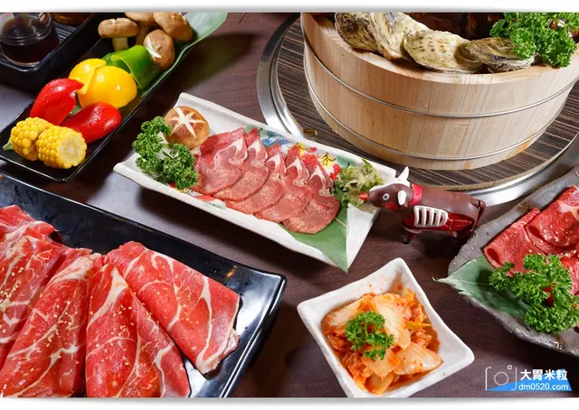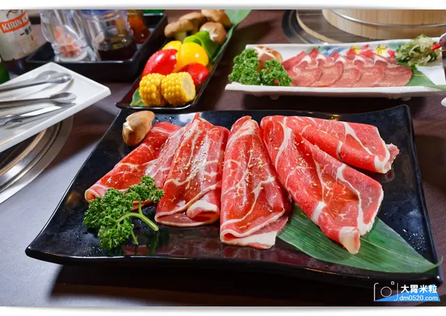 美國安格斯黑牛嫩肩、美國特級雪花牛、黃金椒鹽松阪豬無限量供應。