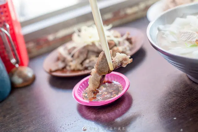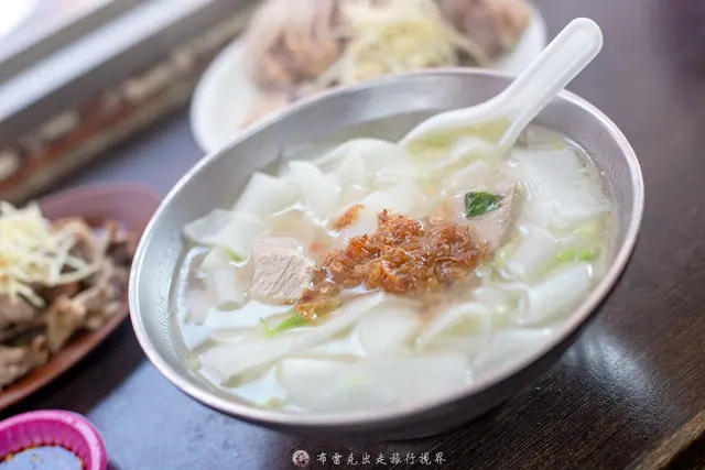 粄條入口真的很滑順,沒有到非常厚,跟麵容餃好的粄條不太一樣,後者是比較有嚼勁一些些,然後《老巷小館》是較為柔潤,配湯來吃還不錯,一碗50元份量上還蠻足夠的,油蔥的香氣不會太突騖,蠻恰恰好的,但那兩片瘦肉是我一直不懂的,很多這種麵都很習慣加兩片瘦肉,可是吃起來都很乾,相較瞎仔巷50年麵店可以混麵,這邊就比較單調一些。
