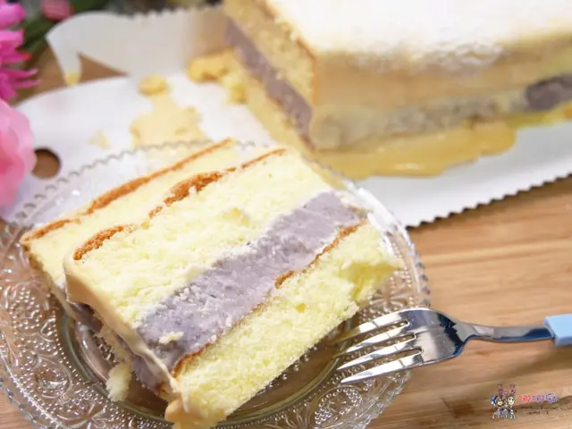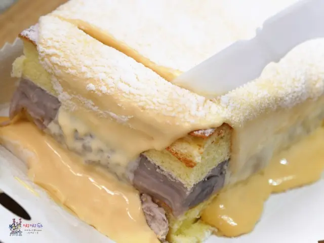 看那厚厚一層的芋頭夾在中間,身為芋頭控的我已經心花怒放了,等拍完影片,幾乎整個都被我給吃掉。