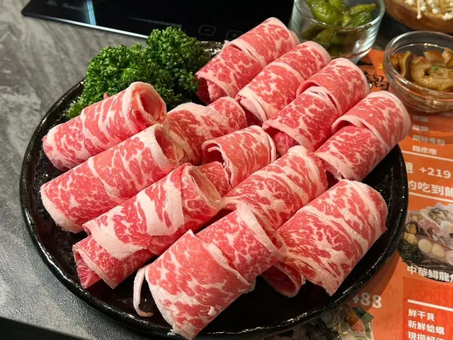 2. 牛肉現點現切品項豐富,無骨牛小排、安格斯板腱牛等,涮個幾秒放入口中,感受到肉質鮮美。肉肉控也可以選擇+219元,可以享有四種肉品吃到飽,大胃王來這準沒錯