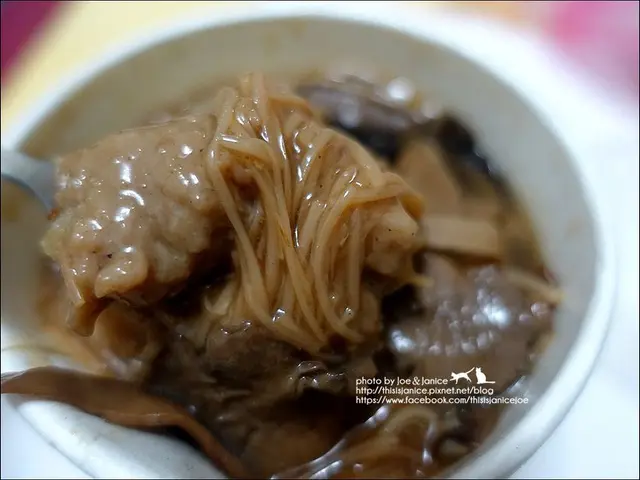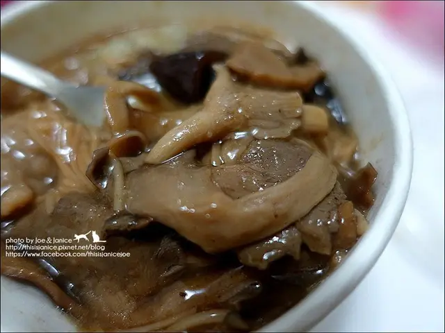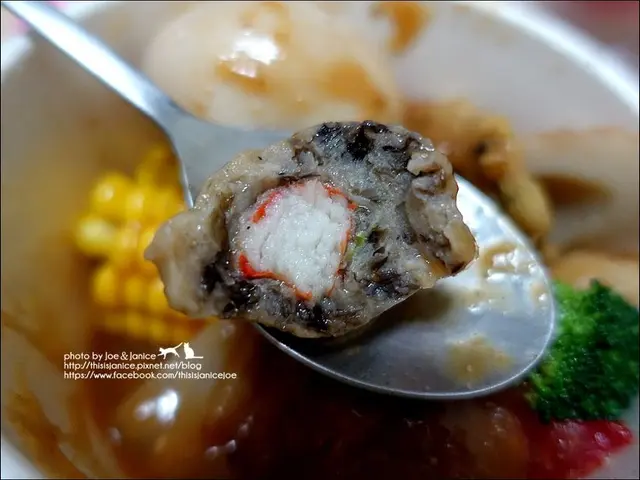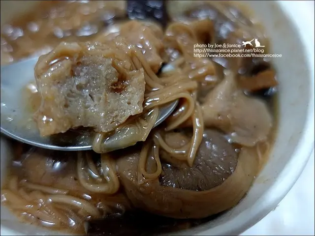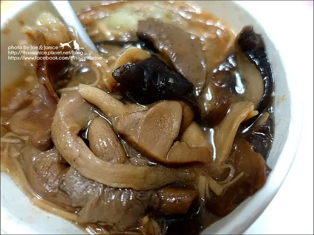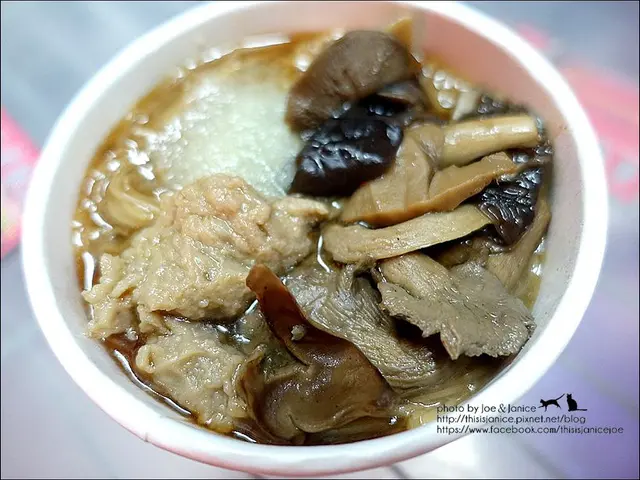 上頭除了有好多的菇菇,還有幾塊肉羹唷
