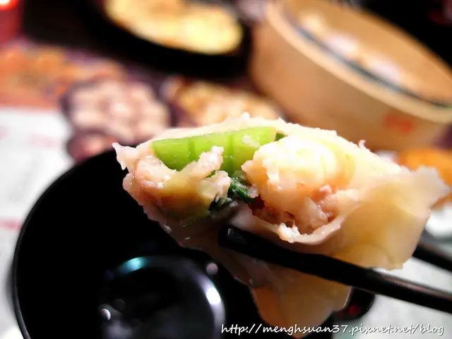 小姐特別強調他們家的鮮蝦蒸餃裡面是用一整隻蝦