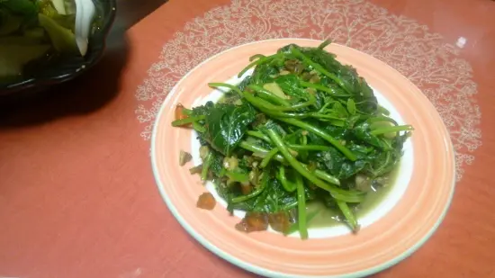 地瓜葉皮蛋,蠻特殊的一道菜,皮蛋切成小塊,和著地瓜葉吃起來其實吃不太出皮蛋感。