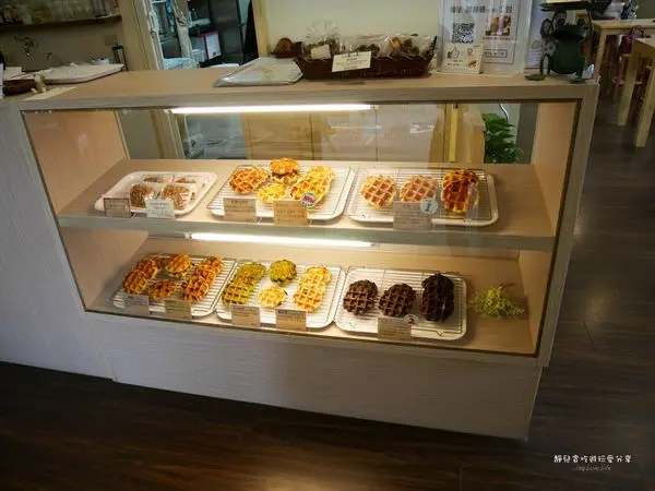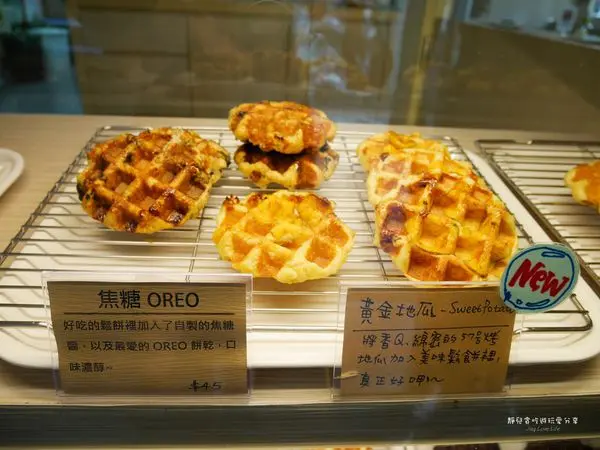 店內的玻璃櫥窗放滿了格子鬆餅,整個就快流口水了我~