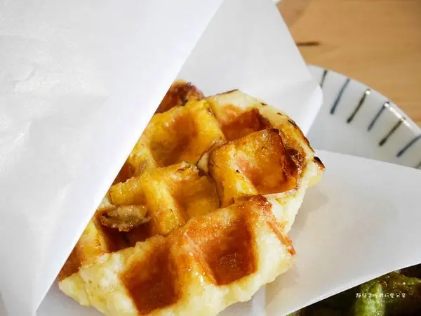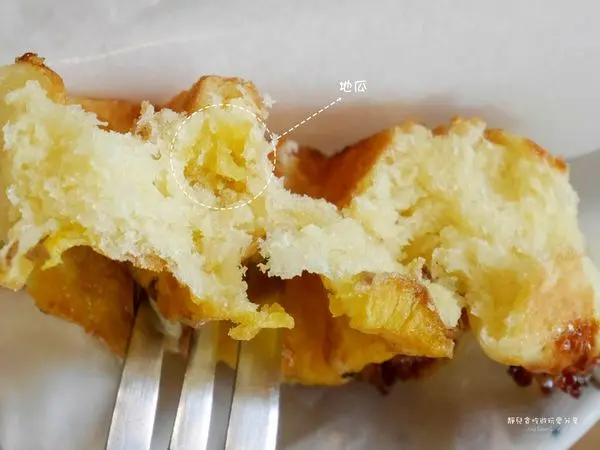 咬一口地瓜的香氣及鬆餅外層珍珠糖的酥脆口感,意外的好搭