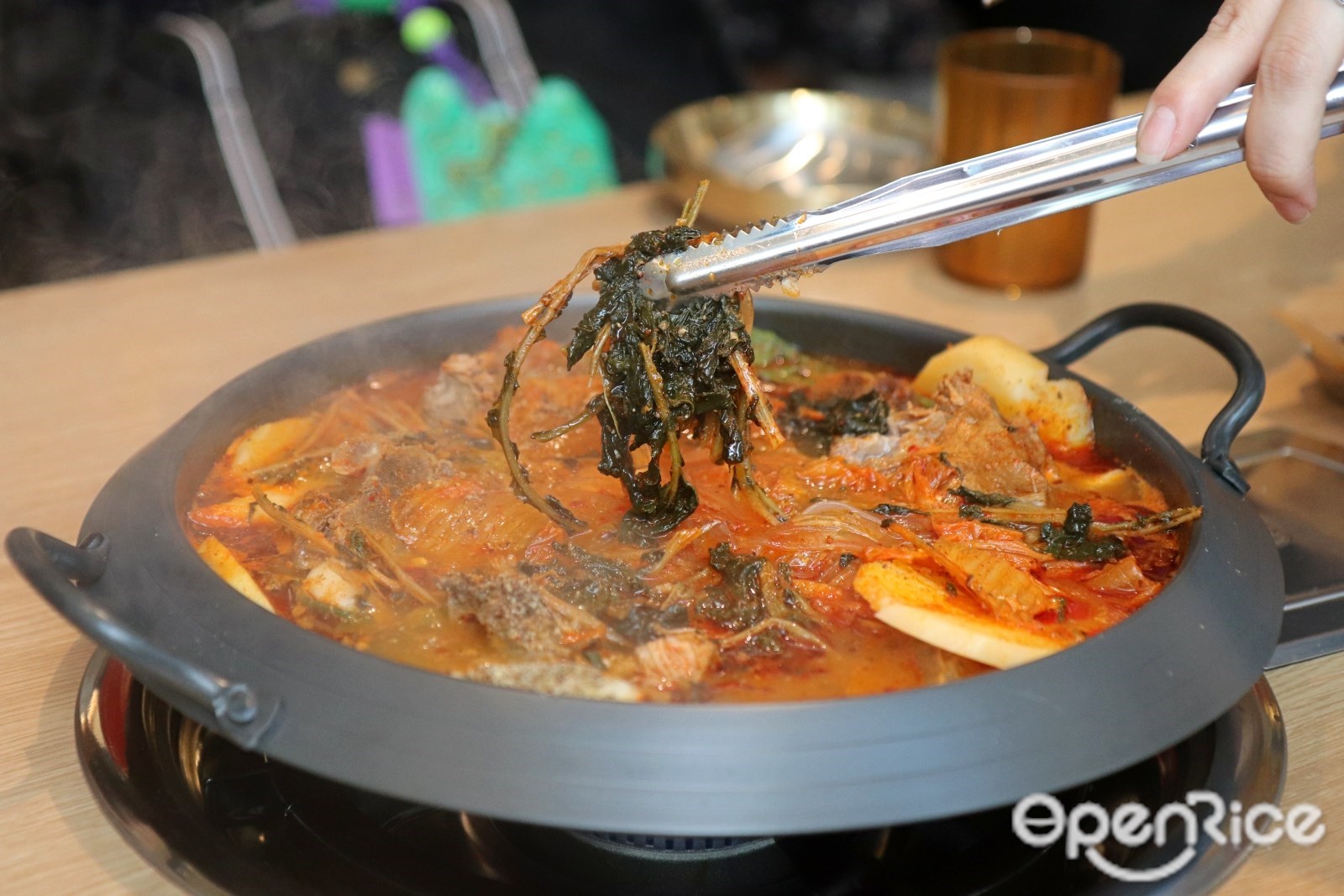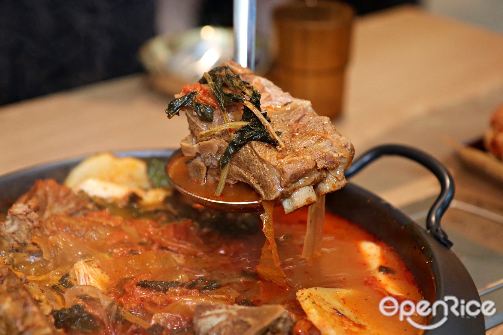鍋物的靈魂,不只是豬排骨!鍋物中的正統芝麻葉帶來獨特清香,大量撒在上頭的紫蘇籽粉香氣溫潤,而口感鬆軟綿密的台灣產馬鈴薯,在長時間燉煮下吸附濃郁湯汁,風味層疊迷人。其中,與眾不同的最大關鍵元素是台灣極為罕見,由Uncle-K團隊親自從韓國引進的蘿蔔葉乾;顏色接近海帶色澤的蘿蔔葉乾,經天然日曬後,能在湯頭釋放出陳年醇厚的獨特風味,少了這一味就不夠正宗,這個也是Uncle-K與其他韓式鍋物的差別。