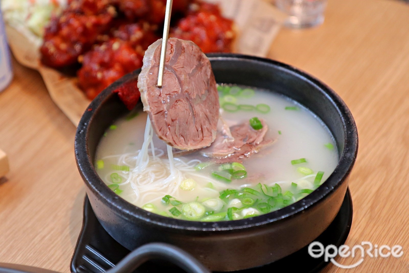 除了排骨鍋,Uncle-K台中店也帶來多道道地韓式料理,其中韓國代表性美食的「雪濃湯」是台中店的限定美味,以牛大骨、牛雜骨熬煮長達9小時,再以高湯繼續熬煮牛腱肉,並需經冷卻、去除油脂後再次熬煮,經繁複過程熬煮出三種不同濃度的高湯,才能成就乳白色澤的溫潤湯品;以韓國辣醬點綴的「牛尾湯」,使用台灣黃牛的牛尾燉煮,帶骨的肉質膠質滿滿,搭配的麵線風味溫和,適合所有年齡層的顧客。「首爾蒸牛尾」是連台北都相當少見的經典菜色,光是處理牛尾的前置作業就需耗時8小時,保留鮮甜不腥臊,再加上特製醬油,帶來酸甜帶辣的吮指回味。