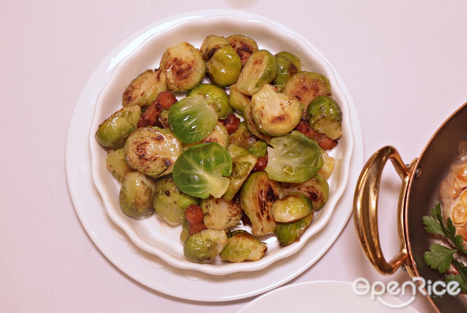 主廚引以為傲的主餐配菜「培根孢子甘藍」