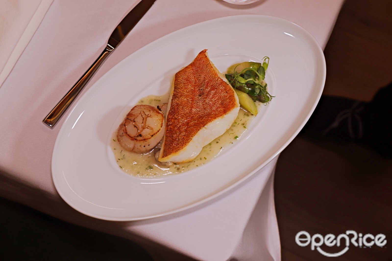 「野生紅條石斑&3L大干貝佐香草蛤蠣醬汁」讓不吃牛肉的饕客也能有頂級海鮮的選擇。