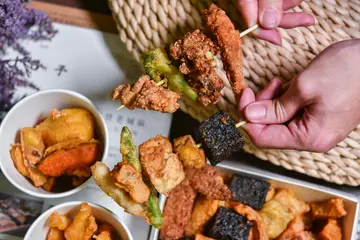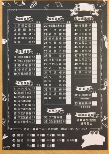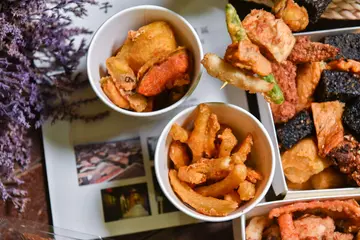 應該很少人能抵擋的了鹹酥雞的誘惑吧?吃過這麼多鹹酥雞,在嘉義基隆廟口鹹酥雞第一次吃到沾著日式炸粉的口味,薄薄一層炸粉讓人感受不到油膩,每樣食材更是老闆所精心挑選而來,連在地人都推薦的口味怎麼能錯過~嘉義基隆廟口鹹酥雞就愈離嘉義車站不到三百公尺處,開車可停在平日1h/$20的百城停車場,騎機車門口還滿好停放的!嘉義基隆廟口鹹酥雞的外觀比傳統鹹酥雞店還要有個人特色,門口擺放了一隻雞頭的模特兒,路過都會忍不住多看一眼XD整間攤子非常乾淨整潔,炸物選擇豐富多元,很少看到品項多到選不完的鹹酥雞店 😎這天下午五點鐘才剛營業就看到鹹酥雞和花枝及魷魚已經缺了這麼大角,看來這些一定是必點!每樣食材豐富陳列讓人看了都好想吃~少見的炸香蕉與炸皮蛋在這也吃的到❤嘉義基隆廟口鹹酥雞菜單左邊的品項可以說幾乎是必點的!採用溫體肉的肉品在口感上都很不錯,蔬菜的選項也特別多,食蔬炸法比較像是日式天婦羅那樣,但粉沒有這麼厚,吃起來較清爽。點完餐以後拿到號碼牌就等叫號機叫號囉。份量多的話會使用盒裝,用盒裝吃起來特別過癮!以前在台中日新影城看電影的時候也會刻意買到$200元的鹹酥雞,因為這樣用盒子裝著看電影吃真的很豪爽阿XD炸物跟傳統鹹酥雞的胡椒香很不同,口味帶點微微的甜配上新鮮蒜片也很涮嘴,我們大概點了這些大家可以參考看看~?鮮炸魷魚 $50?炸花枝 $65?鹹酥雞 $50?偶數豬 $50?芙蓉豆腐$40?三角骨 $40?日本栗香地瓜 $35?手工馬鈴薯 $35?手工豬會跪 $25?炸香蕉 $30?雞屁股 $30?香菇 $30?手工餛飩 $20?百頁豆腐 $20?菜頭粿 $10非常推薦大家點到兩百塊,贈送的神祕小物酥酥脆脆像餅乾似的,撒上梅子粉香甜清脆一點也不油膩,是在別的地方沒吃過的呀!下次要是再來吃我一定會衝著這麼隱藏版美食點到兩百元 😀叉子串的大致上有雞翅、三角骨、花椰菜、鹹酥雞、薯條、天婦羅、四季豆、百頁豆腐、地瓜跟米血,可以看出來每一樣都沒有散發出油亮亮的光澤~三角骨雖然帶骨但是肉質也很嫩很好咬,不過這是每日限量,要吃手腳可是要快嘿!我們私心認為必點的有魷魚、花枝、鹹酥雞、偶數豬、芙蓉豆腐、三角骨、日本栗香地瓜、雞屁股及餛飩。脆度上掌握的也很不錯,不是乾乾的那種脆!炸南瓜沒有多餘的生味,是很綿密很甜的~左邊是芙蓉豆腐,芙蓉豆腐熱熱吃則是外脆內嫩,淋上不搶味的日式醬汁也是大家最愛的品項;右邊的炸香蕉因為香氣太濃郁了,會讓其他食物沾上香蕉的味道所以自己額外裝盒?軟而不爛的口感撒上梅子粉很搭耶,香蕉也是每日限量唷!炸餛飩酥酥脆脆,韭菜的味道不會讓人覺得太重,不愛韭菜的我也很喜歡!使用高成本的栗香地瓜多了一股糖炒栗子的香氣,口感較為紮實,我覺得超好吃!偶數豬及鹹酥雞都選自溫體肉,肉質比以往吃到的還要細嫩且多汁,讓人一口接一口呢!真心沒在鹹酥雞店吃過這麼好吃的肉 😮日式甜不辣QQ的厚度也不薄。菜頭粿一片只要十元超便宜的!而且是白色沒有加蝦米的那種,我超愛這種白白的菜頭粿❤日本料理起家的老闆將料理食材的方式及口味與台灣的鹹酥雞做結合,口味跟平常吃到的真的不太一樣~以鹹度來說比以往還要清爽,難怪會成為嘉義人推薦的鹹酥雞宵夜首選!…查看更多