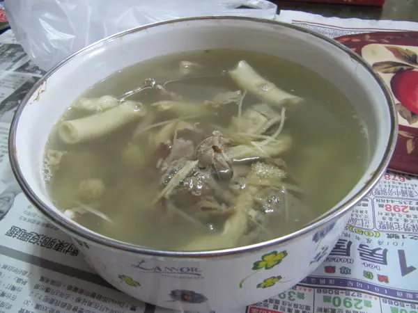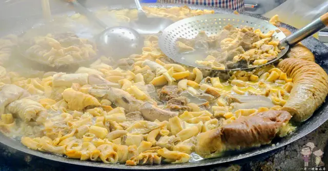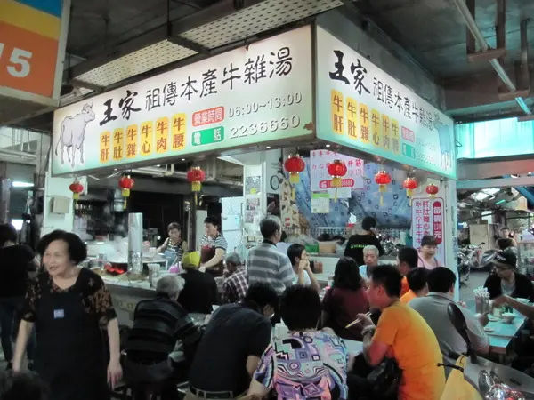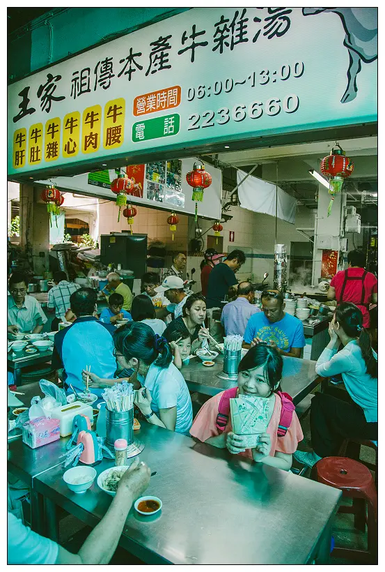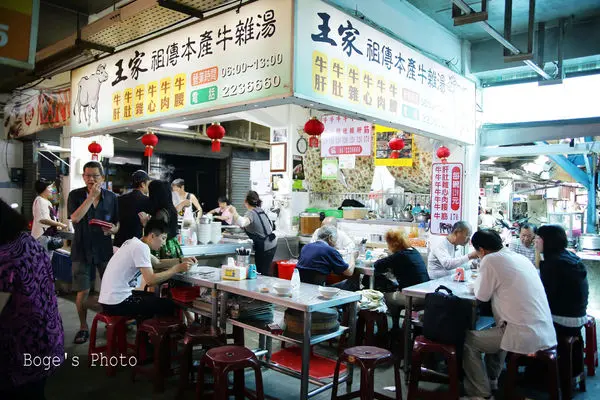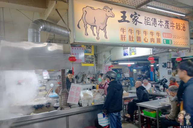 這家真的是東市場必去,光是衝著傳承四代 人氣排隊百年牛雜湯老店這個名號就值得一吃!加上老闆那個招牌超巨鐵鍋裡面沸騰熬煮中的滿滿 當天現宰本土牛肉就覺得好熱血有沒有。而且最厲害的是大鍋內混煮的牛雜湯頭卻依舊清甜,一碗才150元,給滿滿的料以外,當日新鮮現煮的牛骨高湯還能無限續碗喝到飽,好超值又暖胃。王家祖傳本產牛雜湯|交通位置位於嘉義東公有零售市場內直接搜尋忠孝路106號即可找到。市場樓上有收費停車場其實在東市場內,看到排隊人潮就是了,這家應該是市場內最人氣的排隊名店。一邊排隊一邊看消費須知先排隊再點餐、結帳後入座。固定公休日是每週一採用本土牛肉,而且當天現宰新鮮美味吃得出來,重點是也不貴。每次去都差不多是這種人潮,生意真的好到爆。王家祖傳本產牛雜湯|MENU價格落在$150~$200之間還能續湯。有牛肉、牛心、牛雜、牛肚、牛腰、牛肝、牛筋等部位王家祖傳的招牌大鍋牛雜湯都是當天從北港屠宰送來的新鮮溫體牛牛的各種部位都在這一鍋裡,大鍋混雜一起熬煮。意外的是這樣混雜熬煮的牛雜湯,湯頭還是很清甜呢。牛雜綜合湯如果敢吃內臟的話,點牛雜比較划算,含有牛腸、牛肚、牛肉等…..滿滿的料也才150元一碗。肉質也是真的很新鮮湯頭偏清淡那種就是沒有調味,純粹的牛骨湯頭,清甜順口。高湯還可以無限續 喝到飽這樣。不過大家都是吃完就走,換桌率很高畢竟排隊的人多,彼此體諒就好。這裡有一種屬於南部大鍋湯的溫暖人情味,喜歡。…查看更多