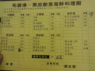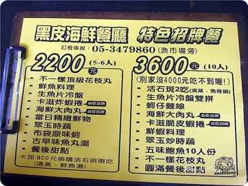 嘉義布袋港@人氣美食-黑皮海鮮餐廳巨無霸肉圓逛完了北門就由濱海公路回家了 沿途會經過布袋漁港. 飢腸轆轆的我們.先估狗了一下 找到這間黑皮海鮮餐廳.還用電話預先訂了位 它就在魚市場的旁邊.一間蠻大的海鮮餐廳不只賣海鮮.還賣一種特別的美食-巨無霸肉圓沒聽過吧! 竟然還好多電視媒體都來報導過 原來傳說的巨無霸海鮮肉圓在這 這次雲嘉南美食還榮獲第一名呢~ 因為有訂位.位置早安排好 並沒有用單點.採用他們的合餐 我們點了5-6人2200元的餐共十道菜 上菜順序並沒有按照上面菜單.是採隨意上 1.生魚片冷盤 都有新鮮.有甜美軟嫩 2. 活鮮蝦 .吃了3隻沒事代表有新鮮 3.卡滋炸蝦丸<招牌> 酥脆的外皮真的有卡滋 4.海鮮大肉丸<招牌> 裡面真的是料飽滿.用料不手軟 有干貝.蝦子.芋頭.鮮肉.香菇等.... 皮是酥脆得再加上豐富的餡料 真不愧是伴手禮第一. 5.古早味魚丸湯 這個魚丸就有點普普.不過湯蠻清甜 6.翠玉時蔬 清炒高麗菜.炒的還不錯 7. 布袋原味蚵 這個蚵我不喜愛這種清蒸法.有吃了一隻.是很鮮甜 8.不一樣頂級花枝丸 花枝丸裹粉炸的.我覺得裹粉有點多餘.如果單炸的話應更美味 9. 清蒸魚<全隻> 因為是2200元的餐.清蒸魚不是石斑.只是普通的魚<我不知它的名> 不過真的很鮮甜.海鮮這個東西.只要有鮮.就會甜 不需過多調味就會美味 這隻魚它做到了 10餐後甜點<.果凍 > 自點的酸梅湯 吃飽後去漁市場逛逛 就跟了幾隻蟹回來. 現在秋蟹 正鮮甜. 買回來處理一下<.當然是James處理的.>因為我不會 真的! 清蒸就好好吃 連對蟹會過敏的我.也OK.沒事 蒸的過程就好香.結果一上桌.根本沒人顧及拍照這回事.等全下肚後 才說:阿~忘了拍照 真是拍謝 這個蟹都不用調味.清蒸就特好吃 秋天正是吃蟹的好時機.不過要買之前.要先詢問一下價錢. 不要像我們一看到蟹.太興奮了.沒比較一下就下手.~~虧了…查看更多