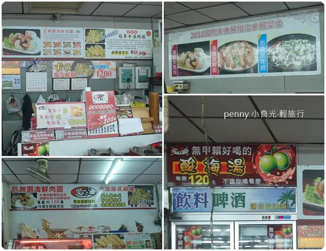 樸實的外觀,但招牌熱情的寫著:巨無霸海鮮大肉丸、卡滋脆皮蝦捲