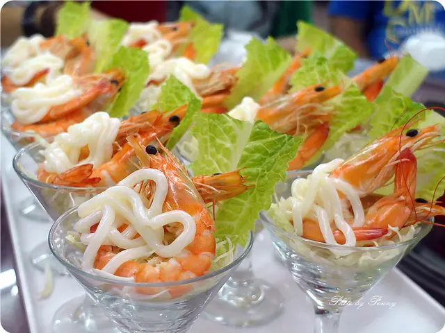 首先上來的是鮮蝦冷盤(這是當日鮮物,由主廚以當日進貨來搭配)