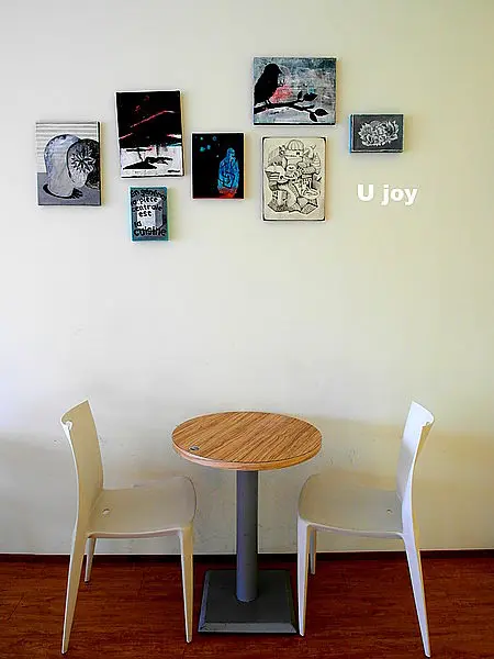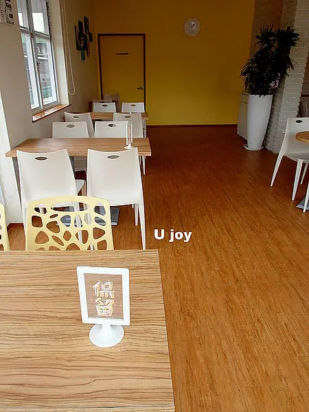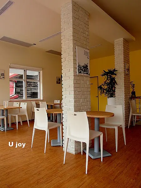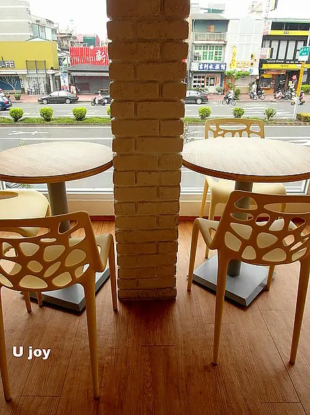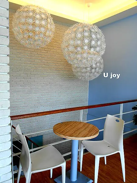 白磚瓦,木頭質感與形象的桌椅,讓我誤以為我誤闖了森林裡的白色夢幻小屋。