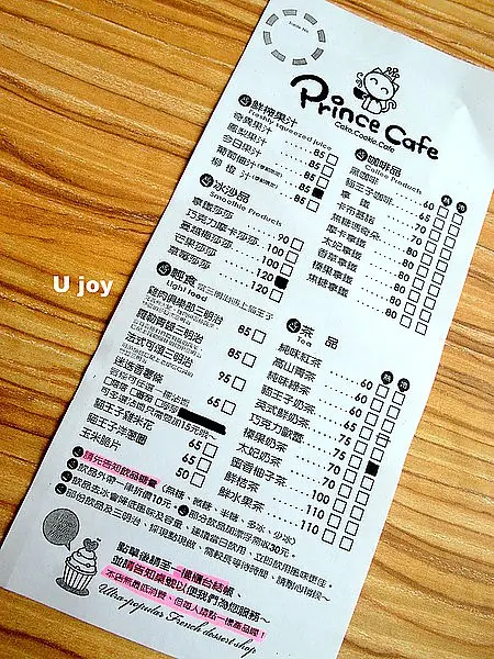 貓王子的menu上是以飲品、輕食為主,