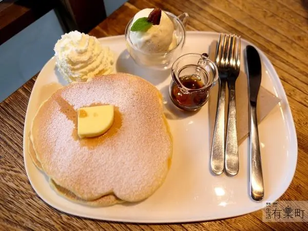 蓬鬆厚實的模樣看起來好療癒,入口可以感受到鬆餅熱呼呼的軟嫩口感,口感鬆軟像是蛋糕般,熱呼呼入口的綿密感好好吃呦!很推薦!單吃享受原味單純口感,或是沾點楓糖漿與香草冰淇淋一起入口都很美味。鬆餅的分量不算少,共有三大片推疊在一起,適合點一份兩人共吃。