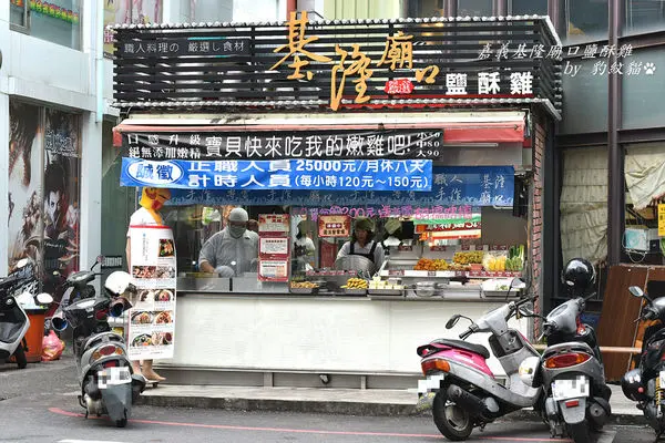 這家【嘉義基隆廟口鹽酥雞】,據說,麻吉從學生時代就是它的忠實粉絲,是在地開業將近十五年的老店。位於仁愛路上錢櫃KTV的斜對面,由嘉義車站徒步走來,只要5分鐘左右。