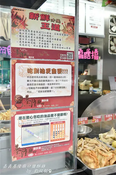 平常為了健康以及考慮到體重問題,阿貓盡可能少吃油炸物,不過麻吉好友們知道我來此錯過【嘉義基隆廟口鹽酥雞】好幾次,再加上生日又快來到,就計畫辦個瘋狂的鹽酥雞派對,讓我大快朵頤一番。客隨主便,而且我也不曉得這家店的好料是哪些,就讓好友去主導點餐。