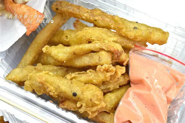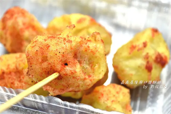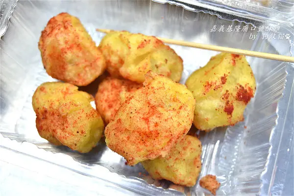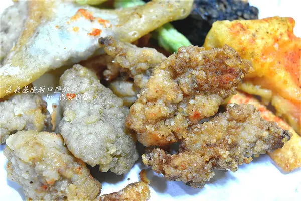 耳邊開始響起一陣爽脆的回音,好迷人的香酥與滋味,有點像蝦餅但沒有惱人的腥味。麻吉說這是【嘉義基隆廟口鹽酥雞】的美食,老闆只送不賣的祕寶。
