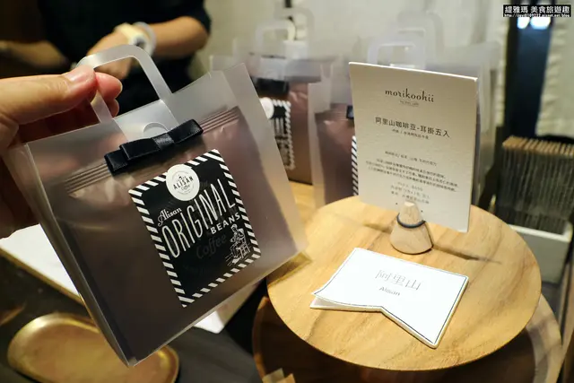 櫃檯上售有阿里山咖啡耳掛禮盒小提袋