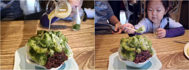 下面舖有紅豆、白玉,淋上抹茶、調味奶配合的天衣無縫,好吃哦
