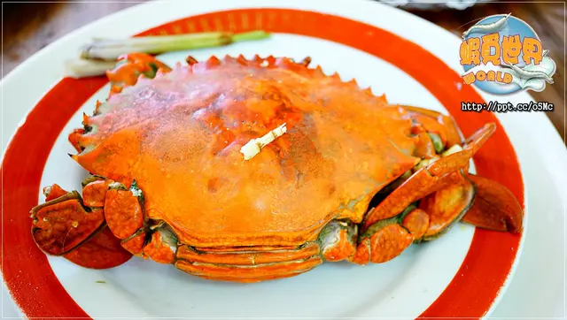 大隻紅蟳(330g),主廚精心以陳年紹興酒蒸料理,嚴選健康養殖現撈活紅蟳