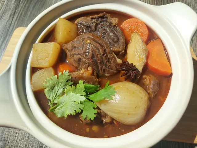 ▼再加了洋蔥、胡蘿蔔、紅蘿蔔等一起燉煮,一道可口的美國牛腱心煲湯,完工(撒花)。