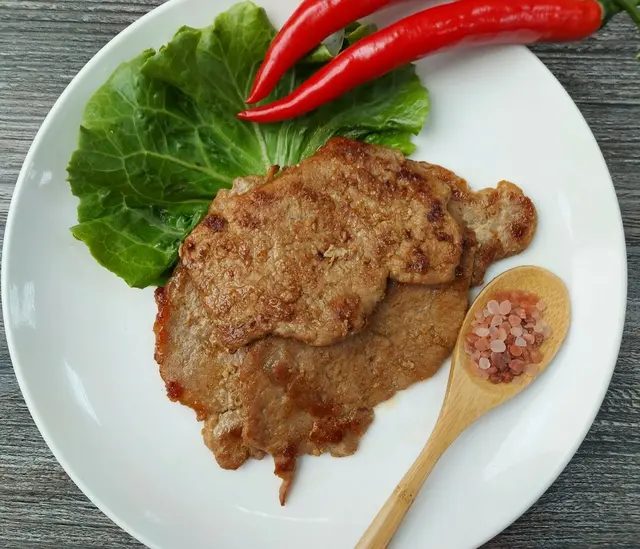 每片70g的里肌豬肉片,抹上一層巴比Q醬,放進烤箱烤個3-5分鐘,烤肉醬和豬排的香氣就會瀰漫著整個房間,小朋友們都敲碗等著吃。