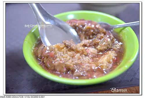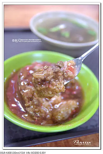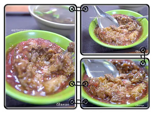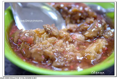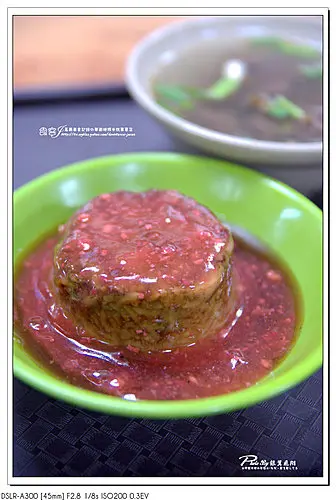 店家招牌米糕淋上紅色店家甜辣醬,醬汁偏南方口味偏甜,米糕也有吃起來的香味,店家採用五花肉與糯米一起蒸,香Q美味尤其淋上填降!真的很棒唷!