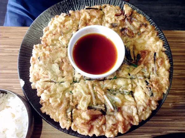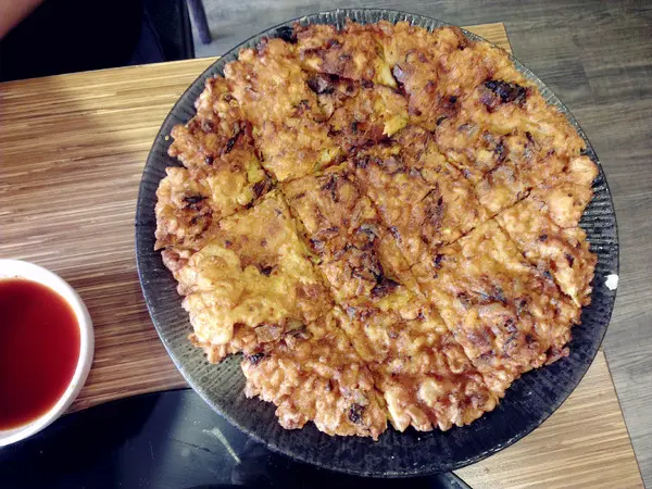 泡菜煎餅 $130上次來點了海鮮煎餅 令人印象深刻的好吃這次一次點了兩種口味的煎餅我最後的結論是...怎麼覺得上次吃到的煎餅比較好吃不過我很喜歡裡面所包的泡菜(不辣會酸) 很開胃呢另外~這家煎餅都很厚~外皮炸的焦脆我很喜歡