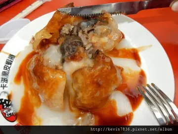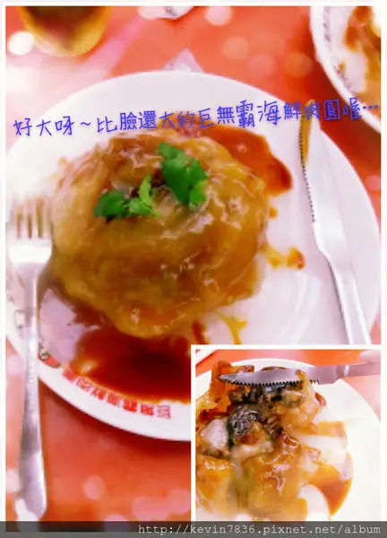 終於,吃完了,但我一個就飽了,幸好沒多點,這就是黑皮酥皮肉圓裡面的巨無霸海鮮肉圓啦~