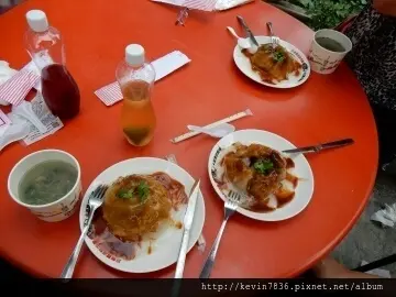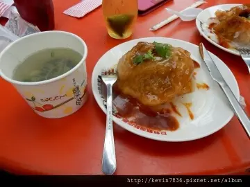 工作人員拿著刀叉給我,喔…吃肉圓真的非常需要刀叉而不是筷子
