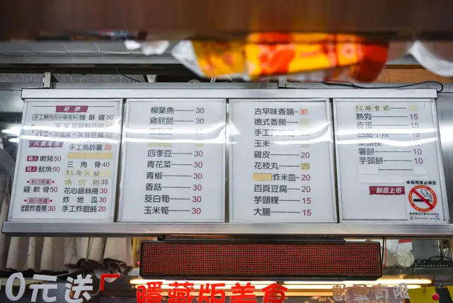 我們私心認為必點的有魷魚、花枝、鹹酥雞、偶數豬、芙蓉豆腐、三角骨、日本栗香地瓜、雞屁股及餛飩。