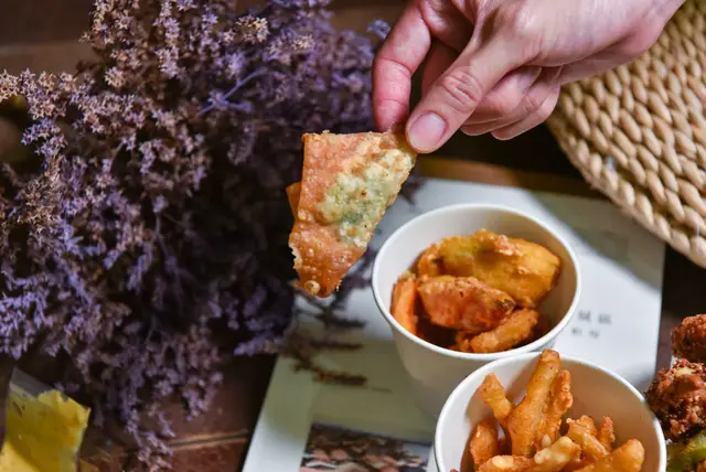 炸餛飩酥酥脆脆,韭菜的味道不會讓人覺得太重,不愛韭菜的我也很喜歡!