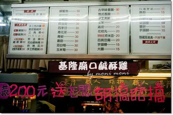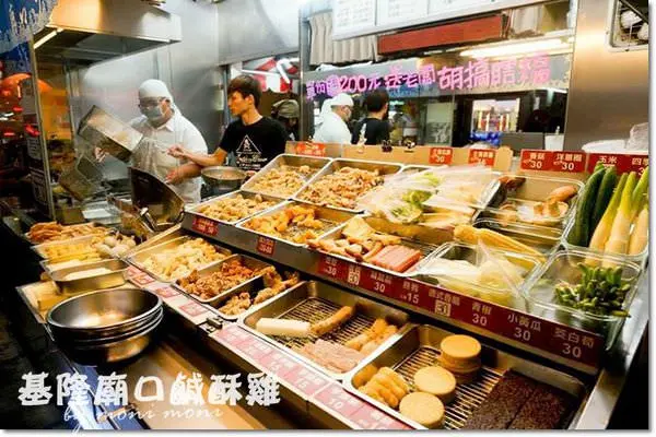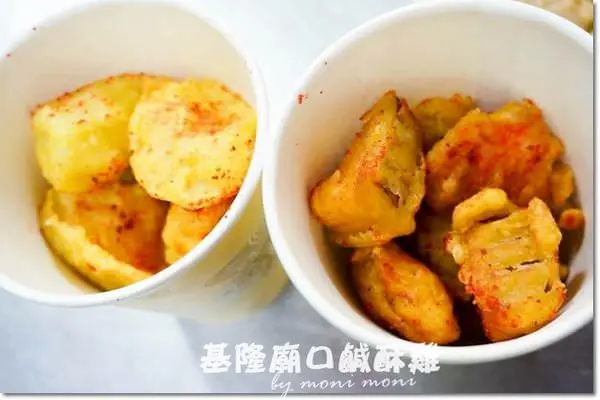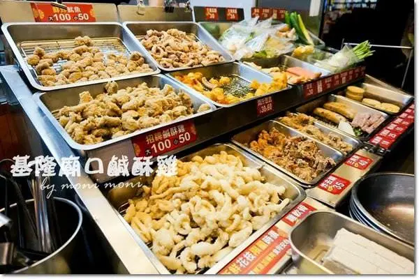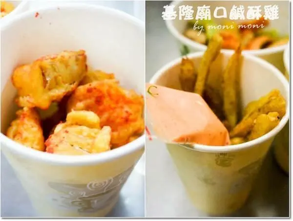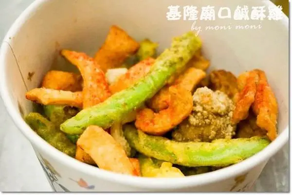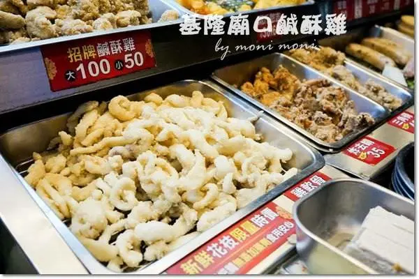 基隆廟口鹹酥雞的種類相當多,有基本款的雞肉、魷魚、雞軟骨等等。